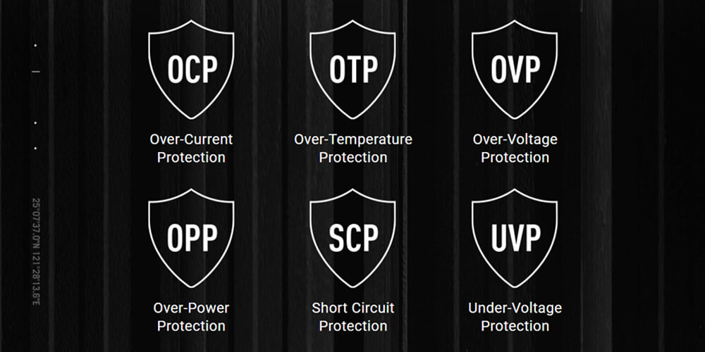 Щоб гарантувати безпечну та стабільну роботу всієї системи за будь-яких умов, цей блок живлення оснащений низкою захисних механізмів.